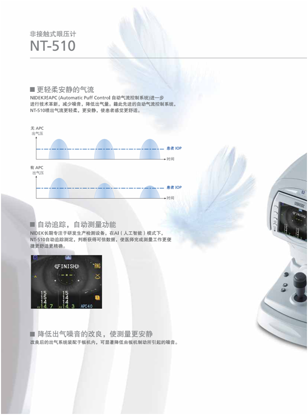 ※利用探針以一定速度撞擊不同壓力的球體的表面后,回彈時(shí)探針的反應(yīng)不同的原理來測量眼內(nèi)壓。